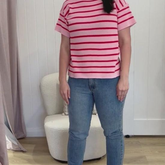 Summer Days Knit Tee – Pink/Red Stripe