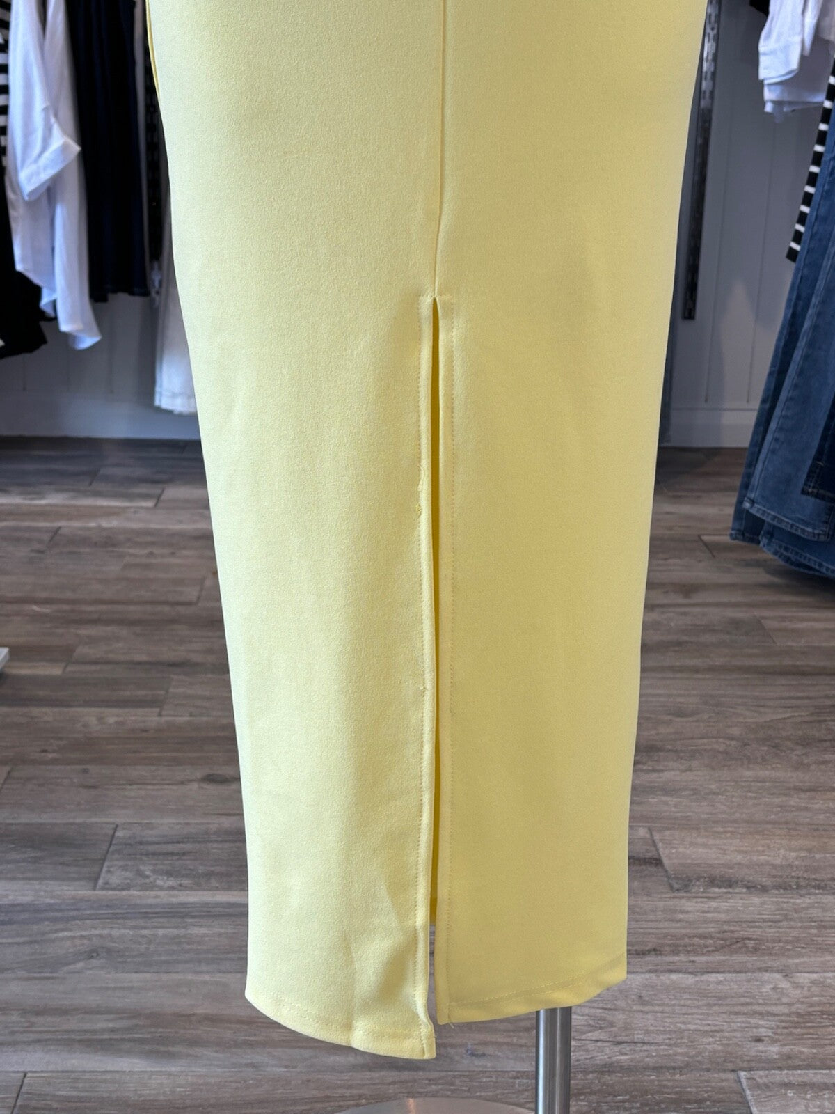 Yellow Strapless Bodycon Midi Dress | Ruffle Trim | Here Comes The Sun | Stretch